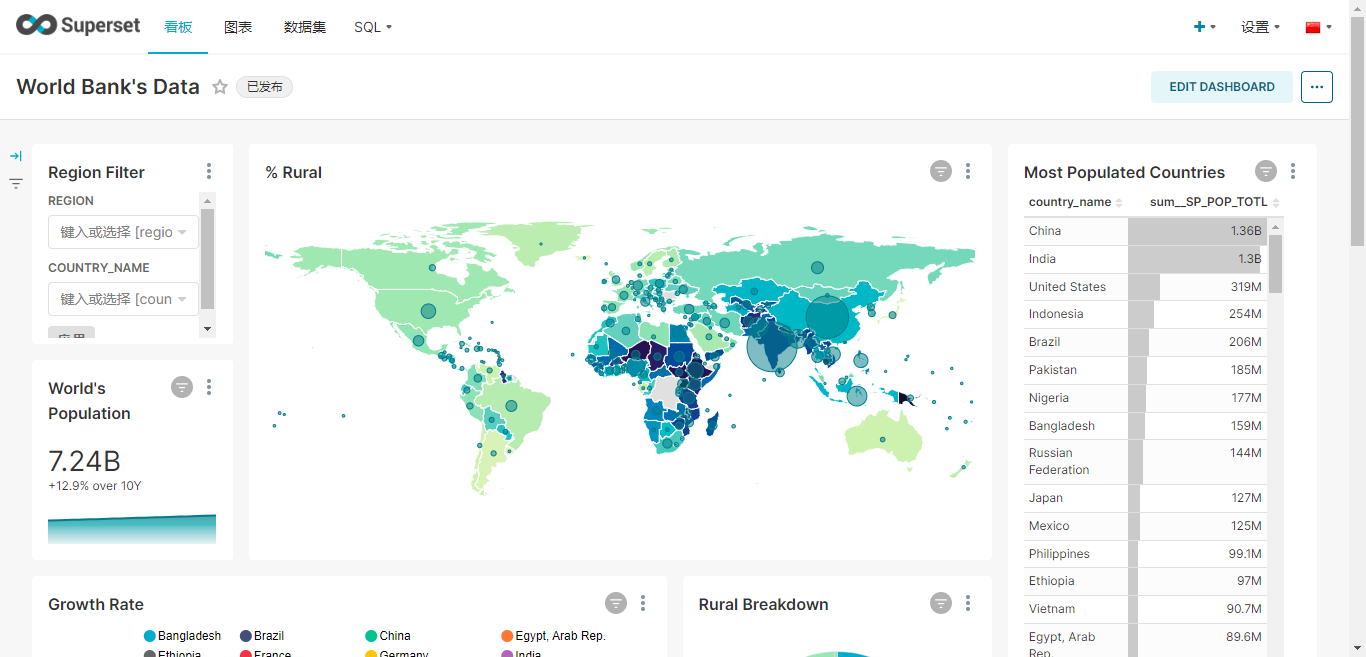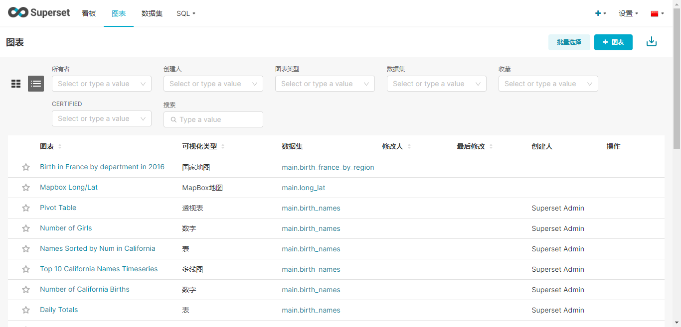 Apache Superset是一个开源的、现代的、轻量级BI分析工具,能够对接多种数据源、拥有丰富的图标展示形式、支持自定义仪表盘,且拥有友好的用户界面,十分易用。